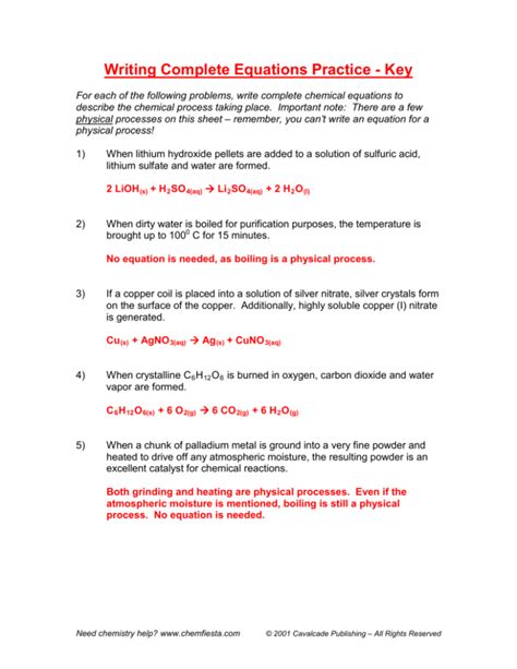 Download Writing Complete Equations Practice Worksheet Answers PDF